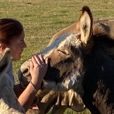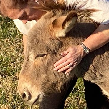 Willow is a Cotentin donkey who came to us through a seller who had purchased her from a kill pen, arriving here alongside Becca and Bella. All three had clearly suffered abuse, and Willow was cautious, wary, and deeply uncertain about whether we could be trusted. She had every reason to feel that way, and we respected every step of her journey back. Over three years of consistent, patient care — good food, gentle attention, and the kind of abundant, unhurried love that cannot be rushed — Willow slowly, quietly learned to trust again. And once she did, she gave that trust back freely and completely. Today she is simply one of the sweetest girls on the ranch, and it is hard to imagine Butterfly Ranch without her. Willow has blessed us with a jack foal named Helo, and while the two had to be separated as he matured — as nature requires — the bond between a mother and her son proved impossible to sever. To this day, they chat with each other across the fence in a daily conversation between two hearts that remain connected forever.